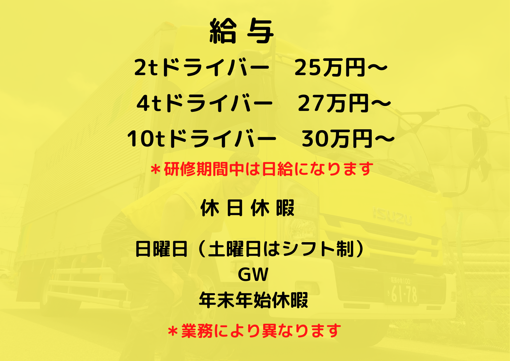 (2) 4tドライバー様々な配送があります。希望を聞かせて頂き、適性を踏まえた上で従事して頂きます。